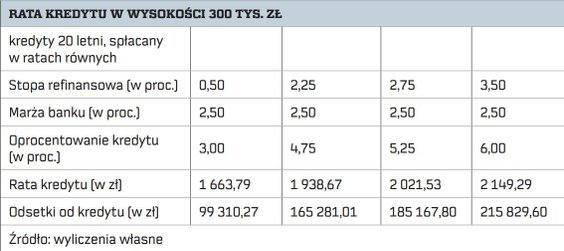 Większość kredytów bankowych oparta jest na zmiennej stopie procentowej, zatem wzrost oficjalnych stóp NBP dość szybko przekłada się na wzrost oprocentowania kredytów. Obecnie stopa referencyjna NBP wynosi 3,5 proc. w skali roku to o 3 pkt proc. więcej niż w październiku ubiegłego roku.
