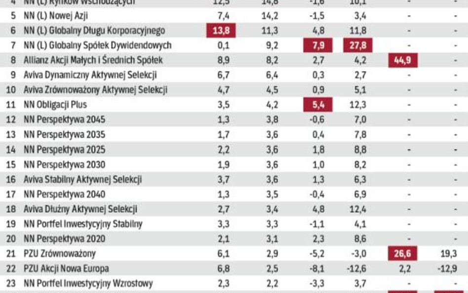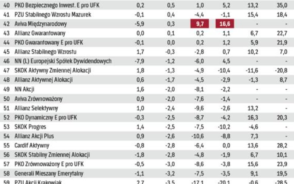 IKE w formie polisy na życie z ubezpieczeniowym funduszem kapitałowym (UFK) ocenialiśmy podobnie jak te prowadzone przez TFI. Analizowaliśmy stopy zwrotu funduszy w czterech okresach (wzięliśmy pod uwagę fundusze akcji, obligacji, stabilnego wzrostu i pieniężne).