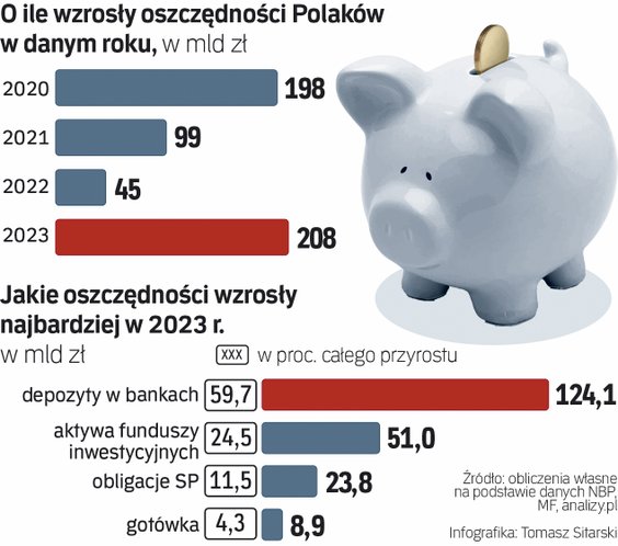 Do rekordowo wysokiego wzrostu depozytów gospodarstw domowych w 2023 r. mogła się też przyczynić zmiana podejścia mieszkających nad Wisłą Ukraińców, którzy przy przedłużającej się wojnie w większym stopniu wiążą swoje życie z pobytem w Polsce. A także wzrost realnych stóp procentowych. Po spadku inflacji do ok. 6 proc. i przy stopie referencyjnej na poziomie 5,75 proc. realna stopa procentowa to już tylko minus 0,25 proc. W lutym 2023 r., gdy inflacja wynosiła 18,4 proc., a stopa referencyjna 6,75 proc., było to minus 11,65 proc.