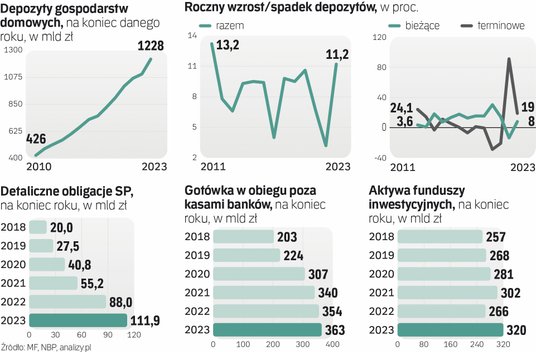 – Po części takie wydatki były finansowane z oszczędności, ale koniec końców Polacy zauważyli w swoich bilansach, że ich zasoby zmniejszyły się w ujęciu realnym. Nawet jeśli ktoś nie „naruszył” swoich nadwyżek finansowych, to zauważył, że przy wysokiej inflacji i głęboko ujemnej stopie procentowej tracą one mocno na wartości. Od kilku miesięcy mamy więc do czynienia ze zjawiskiem odbudowywania oszczędności po fatalnym pod tym względem 2022 i 2021 roku – mówi Piotr Bujak.