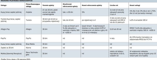 W pierwszej z firm wystarczy zgłosić chęć skorzystania z usługi i potwierdzić płatność otrzymanym kodem. Wszystko bez zbędnych formalności znanych z płatności ratalnych oferowanych przez sklepy we współpracy z bankami. Zakupy są najczęściej rozkładane na trzy lub sześć rat, czasem na dziesięć, ale wtedy opłata wynosi 10 zł. Na stronie Mokka, marki należącej do Revo Technologies, można wejść w ofertę wybranego sklepu i zanim wybierze się produkt, sprawdzić wszystkie warunki finansowania. W Twisto termin płatności można odroczyć o 45 dni, płatność rozłożyć bezpłatnie na trzy miesięczne raty lub na 12, ale nie jest to tanie. RRSO wyniesie ponad 60 proc., a nawet dwa razy więcej. Nie będzie natomiast niespodzianek, ponieważ na stronie Twisto jest kalkulator.