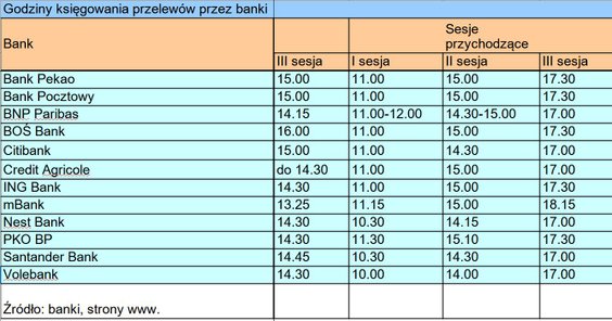 Gdyby banki przekazywały pieniądze bezpośrednio pomiędzy sobą, to wystarczyłoby spojrzeć na godzinę sesji w obu bankach i już byłoby jasne, kiedy dojdzie przelew. Tu dodatkowo w wyliczeniach należy również uwzględnić sesje KIR, czyli Krajowej Izby Rozliczeniowej.