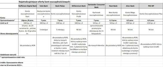 Z reguły klient nie ponosi żadnych opłat za otwarcie i prowadzenie takiego rachunku. Bezpłatny jest również dostęp przez bankowość internetową i mobilną. Darmowe są także wewnętrzne przelewy za pośrednictwem bankowości internetowej i mobilnej. Często banki oferują także bezpłatnie jeden przelew czy wypłatę środków w miesiącu. Najkorzystniejszą opcją jest rachunek, który oferuje najatrakcyjniejsze oprocentowanie z najdłuższym okresem jego obowiązywania. Warto jednak zauważyć, że oferta najatrakcyjniejszych kont oszczędnościowych jest ograniczona czasowo (obowiązuje tzw. oprocentowanie promocyjne) i obowiązują górne limity dla środków, które są objęte atrakcyjnym oprocentowaniem. Najniższe progi wynoszące 50 tys. zł obowiązują w Nest Banku i Santander Consumer Banku. Z kolei w Velo Banku możemy ulokować kwotę do 300 tys. zł. Nadwyżki powyżej wspomnianych kwot są już oprocentowane znacznie mniej korzystną stawką.