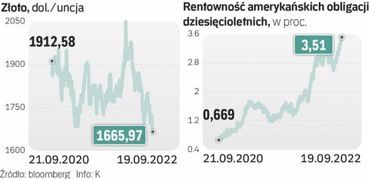 Złotu nie sprzyja rozpoczęty w tym roku cykl podwyżek stóp procentowych w Stanach Zjednoczonych. W połowie września, gdy w związku z wyższym, niż się spodziewano, odczytem inflacji oczekiwania co do tempa zacieśniania polityki monetarnej przez Fed się wzmocniły, złoto przebiło poprzedni, lipcowy dołek w okolicach 1700 dolarów i powędrowało około 40 dolarów niżej. Z kolei kurs srebra spadł w tym roku o blisko 17 proc., do 19,4 dolarów, za uncję. Na przełomie sierpnia i września cena uncji srebra spadła niemal do 17,5 dolarów i jak na razie jest to tegoroczny dołek. Poprzednio srebro było tak nisko w połowie 2020 r. Przypomnijmy, że dynamika wzrostu cen w sierpniu w USA sięgnęła 8,3 proc. w porównaniu z takim samym miesiącem przed rokiem wobec oczekiwanej zwyżki o 8,1 proc.
