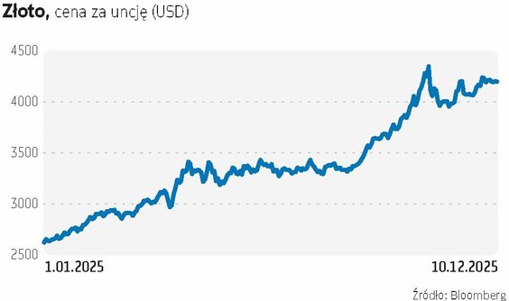 Dosyć zachowawcze są również prognozy dla złota. O ile w środę po południu za 1 uncję tego kruszcu płacono 4198 USD , a w październikowym rekordzie 4381,5 USD, to mediana prognoz zebranych przez agencję Bloomberg wskazuje, że na koniec 2026 r. za 1 uncję złota będzie się płaciło 4300 USD. Przedział prognoz jest jednak bardzo szeroki, co może świadczyć o dużej liczbie niepewnych czynników mogących wpływać na ceny. Inwestorzy nie mają pewności choćby co do przyszłej polityki Fedu. Najbardziej „niedźwiedzio” nastawieni analitycy, reprezentujący firmę Panmure Liberum, spodziewają się więc, że cena złota będzie wynosiła na koniec przyszłego roku tylko 3150 USD za uncję. Najbardziej "bycza" prognoza, autorstwa analityków JPMorgan Chase, mówi natomiast o 5055 USD za uncję złota na koniec grudnia 2026 r. Do optymistów można zaliczyć również ekspertów Societe Generale (prognozujących 5000 USD za uncję), Goldman Sachs (oczekujących 4815 USD za uncję), BNP Paribas (4769 USD za uncję), Standard Chartered (4750 dol. za uncję) czy Morgan Stanley (4500 USD za uncję).