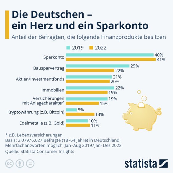 41 proc. dorosłych Niemców w wieku od 18 do 64 lat przyznało w badaniu Statista Consumer Insights, że ma pieniądze na koncie oszczędnościowym. Drugim, już znacznie mniej popularnym, miejscem lokowania pieniędzy przez Niemców jest książeczka mieszkaniowa. Trzyma na niej pieniądze 22 proc. obywateli, 24 proc. mniej niż w badaniu sprzed 3 lat.