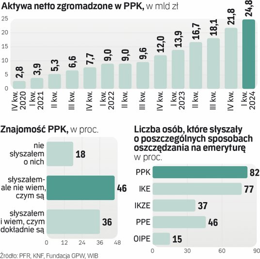 Polski Fundusz Rozwoju, który nadzoruje funkcjonowanie PPK, a wcześniej czuwał nad jego wdrażaniem, szybko przyznał, że owe 75 proc. było mocno przeszacowane i trzeba o tym zapomnieć. Mimo to dziś mówi o sukcesie. – Przed uruchomieniem PPK z pracodawcą długoterminowo oszczędzało w Polsce 300 tys. osób. Dziś łącznie w PPK i PPE jest już 4,1 mln osób. To 14 razy więcej. Do tego dochodzi 700–800 tys. osób w IKE i IKZE. Łącznie mamy około 5 mln osób, które oszczędzają długoterminowo z myślą o emeryturze – mówił w środę w czasie konferencji w gmachu GPW z okazji pięciolecia PPK Bartosz Marczuk, wiceprezes PFR.